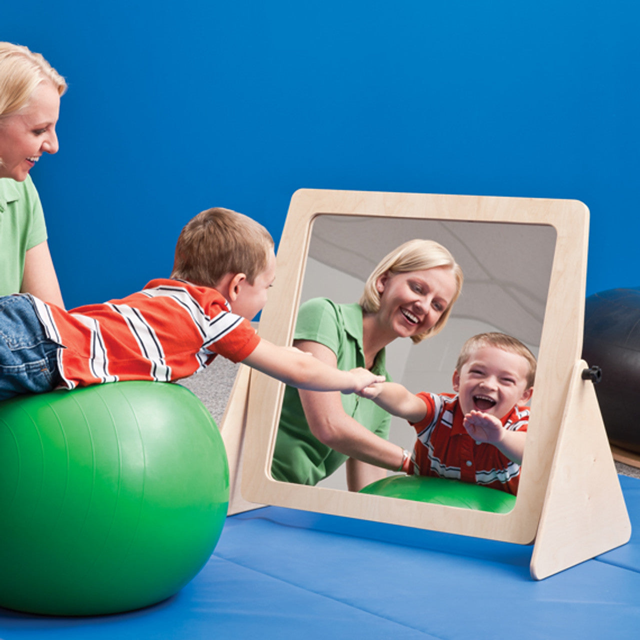 Use the mirrored side to develop visual attention. Use the chalkboard side as an activity to develop fine motor skills. Southpaw's Floor Mirror can be adjusted to almost any angle and easily folds flat for storage. The Adjustable Floor Mirror provides feedback on body posture. It uses visual cues to prompt movement patterns. Made of mirrored plexiglass.